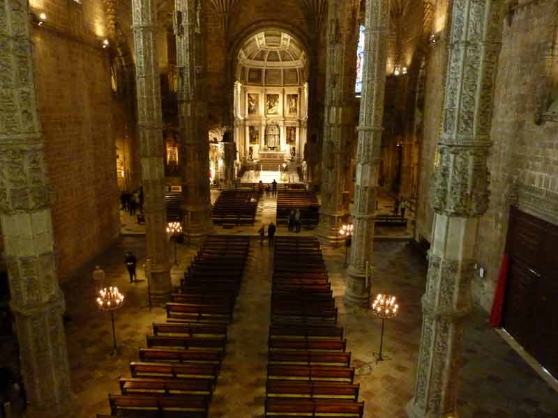A l’intérieur de l’église Sainte-Marie, vous apprécierez son harmonie architecturale qui conjugue finesse et robustesse (elle résista au terrible séisme de 1755). Vous découvrirez également les tombeaux de Vasco de Gama et de Luís de Camões. De l'église, vous accéderez au chef-d’œuvre de l'architecture manuéline et point d’orgue de la visite : le cloître. L’incroyable richesse sculpturale de cette enceinte (qui s’apparente plus à une cours de château qu’à un cloître) vous séduira sans aucun doute…