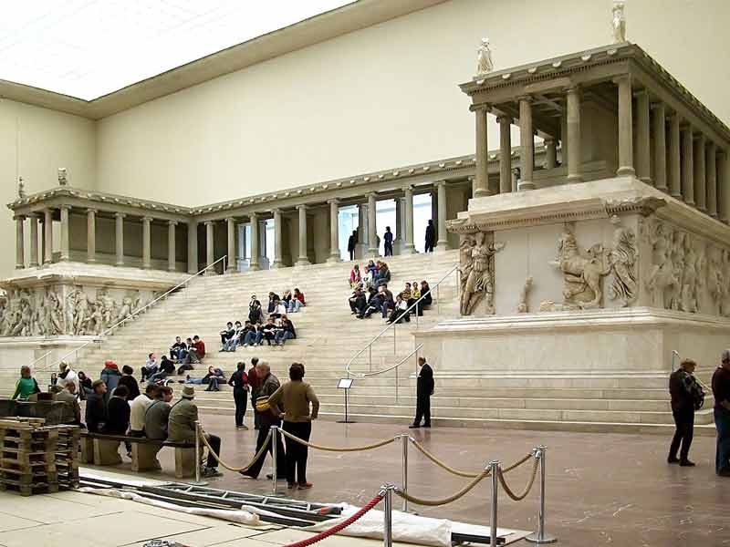 La collection des antiquités présente de véritables trésors d’une valeur inestimable parmi lesquels l’Autel de Pergame (IIème siècle avant JC), découvert en Asie Mineure, qui a donné son nom au musée. Autre pièce maîtresse du musée, l’impressionnante Porte du marché de Milet est un véritable chef-d’œuvre d’architecture romaine.