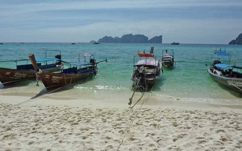 L’archipel des îles Phi Phi est particulièrement réputé pour ses plages paradisiaques et ses spots de plongée. Si vous n'avez qu'une journée à passer à Ko Phi Phi Don, nous vous conseillons de vous rendre à Long Beach qui est une des plus belles plages de l’île, facilement accessible depuis Tonsai (30 minutes de marche depuis le port ou 5 minutes en long tail). L'eau y est cristalline et chaude, ce qui maximise les chances de voir une multitude de créatures marines colorées et exotiques. Les quelques restaurants installés sur la plage vous permettront de manger les pieds dans l’eau !Depuis Long Beach, des long tail boats vous amèneront jusqu’au Shark Point (rocher situé à moins de 500 mètres de la plage) où vous pourrez nager avec des requins à pointes noires et des poissons-clowns. Spectacle garanti !