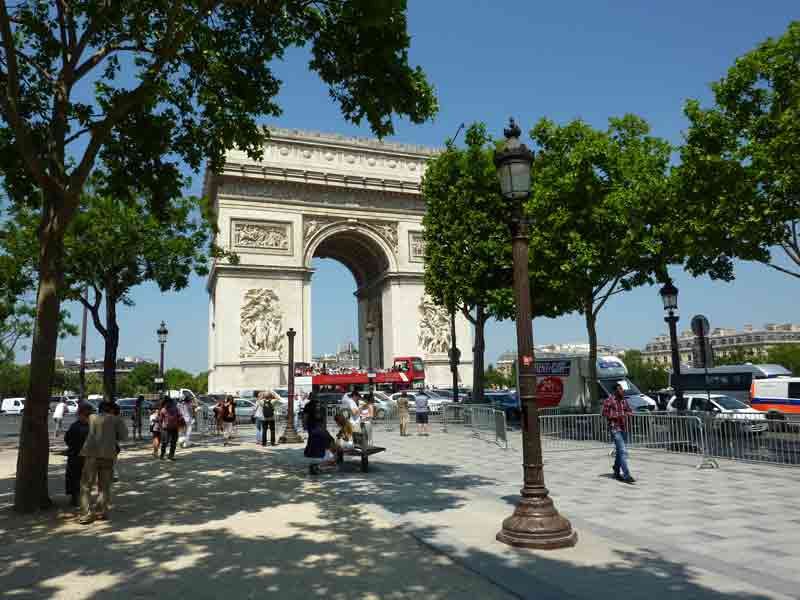 Aux pieds de l’Arc de triomphe, le soldat inconnu repose depuis 1921 et une "flamme du souvenir" qui ne s’éteint jamais commémore les soldats morts au combat. Chaque pilier du monument est orné d’une magnifique sculpture et on peut ainsi admirer "Le départ des volontaires de 1792" (dit "La Marseillaise"), "Le triomphe de 1810", "La résistance de 1814" et "La paix de 1815". Les noms des grandes batailles de la Révolution et de l'Empire ainsi que celui des personnalités ayant joué un rôle important lors de ces conflits sont gravés sur les faces intérieures des piliers des arcades. Depuis la terrasse de l’Arc de triomphe, le panorama à 360° sur les 12 élégantes avenues qui l’entourent est à ne manquer sous aucun prétexte !