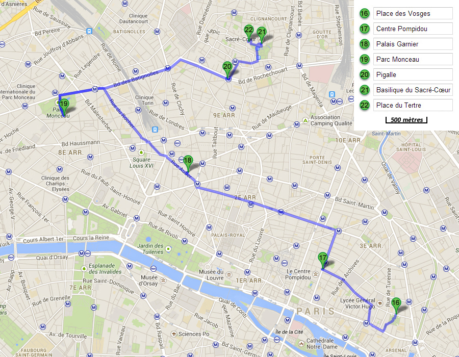 Carte de l'itinéraire de votre troisième journée à Paris (cliquez sur la carte pour l'agrandir)